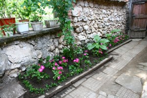 И накрая скромната ми градинка , на село двора ни е доста голям , та има още бая градинки за оправяне,но започнах с тази част . Нямам снимки от преди , но си беше тип дивото зове , само розата (то май само стъблото й се вижда на снимката , иначе цъфти много интересно,бледожълто с червено) си беше от преди . Сега има примули , това покрая не знам какво е , беше на една туфа на друго място в двора и аз го разсадих , дано да пусне бързо още листенца и да стане като бордюр . До петуниите има едно зелено,бяло цъфтяло , то вече е цъфнало,но аз не съм си отишла на село да го видя … Теменужките , тези обикновените,ги преместих покрай дувара , а пък от шарените насадих 3-4 , така че да са като една по-голяма , но от тея големи листа на…баща ми все ми казва името на растението и аз все го забравям , но на снимките скриват теменужките . Орязахме и на съседите черницата (никой не обитава къщата в момента , да не излезе,че ходим да орязваме чужди черници ей така ;р) , за да не е такава голяма сянка и разликата е наистина голяма , преди никакво слънце не стигаше до този кът .